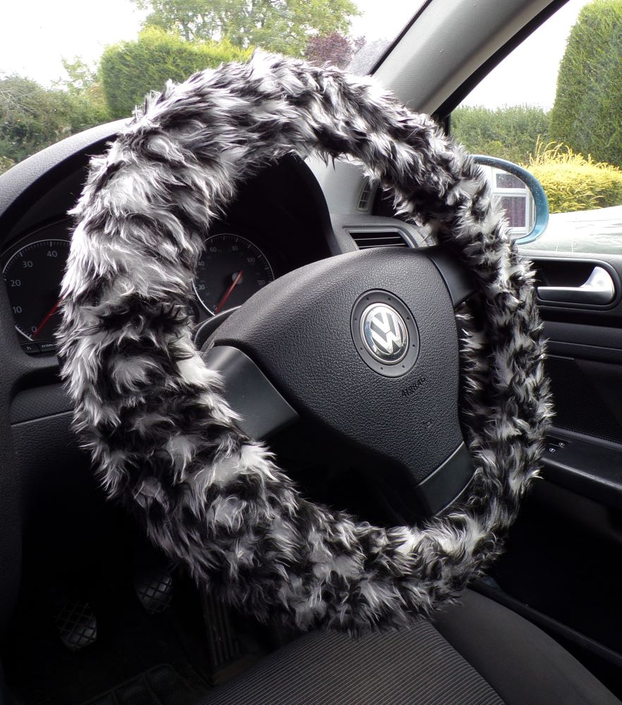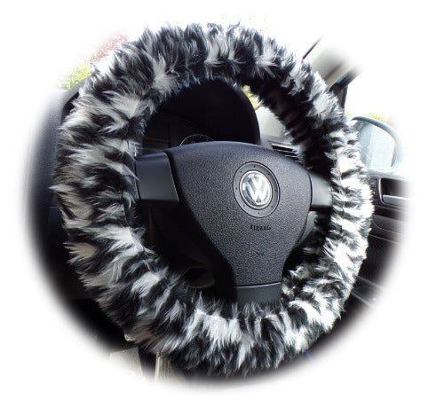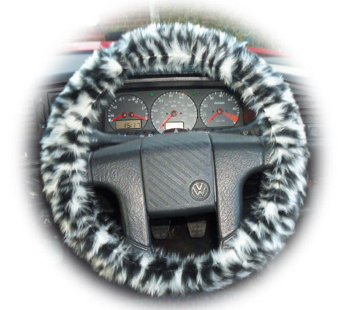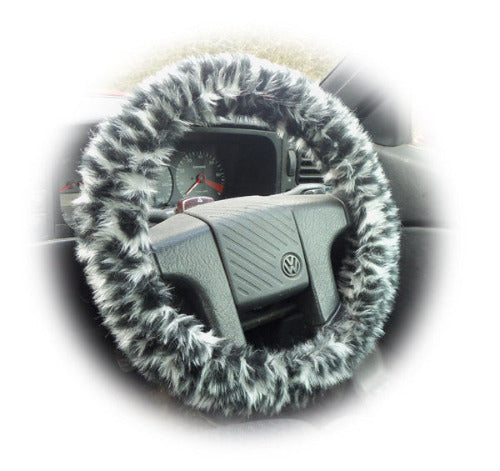 Snow Leopard Faux Fur Steering Wheel Cover – Fuzzy & Fun Car Accessory