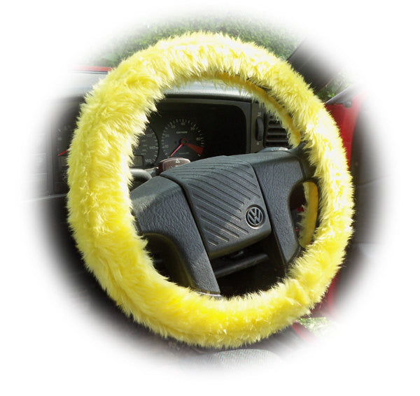Sunshine Yellow faux fur fuzzy steering wheel cover