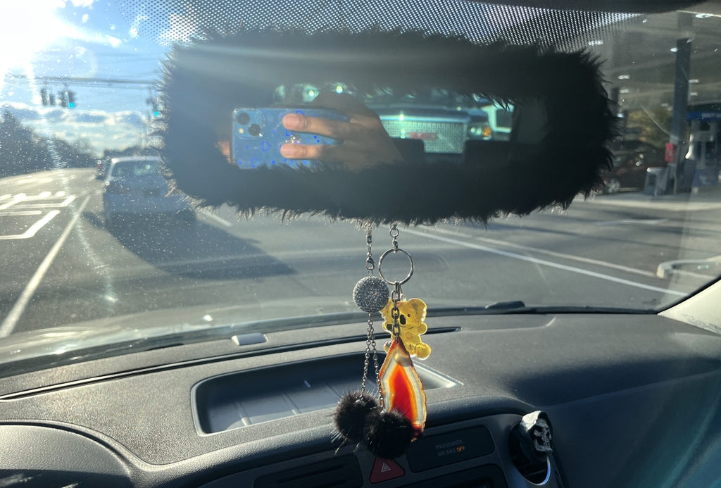 Tired of your rearview mirror being so boring? Look no further! This black faux fur interior car mirror cover will give you the look you've been seeking. The fuzzy material will give your car a chic vibe, while making your drives more stylish and fun!