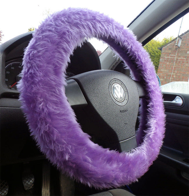 Lilac Faux Fur Steering Wheel Cover – Fluffy Car Accessory