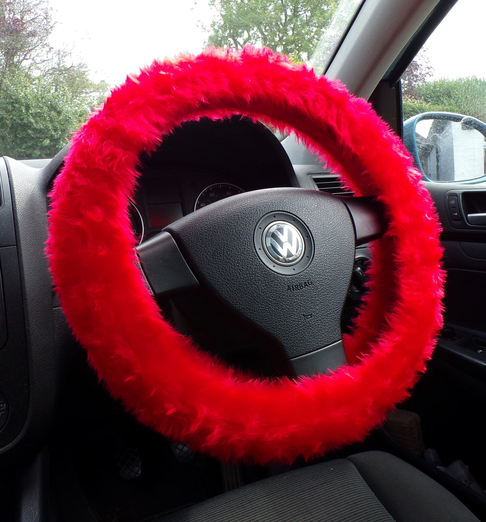 Take your steering wheel from drab to fab with this Racing Red fuzzy faux fur steering wheel cover!
