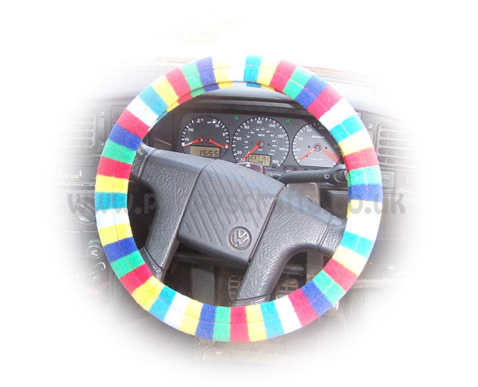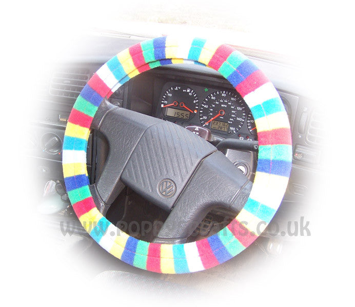 Handmade from Bright rainbow striped fleece fabric, Add some colour to your car interior