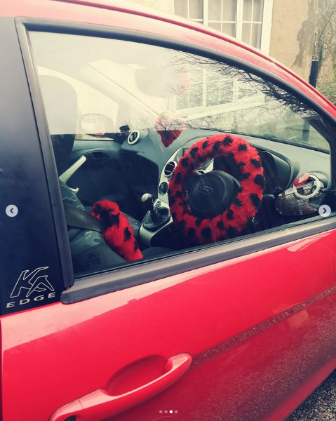 Ladybird spotty faux fur fuzzy steering wheel cover
