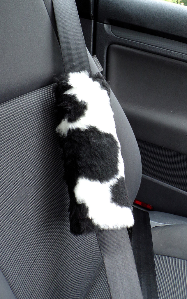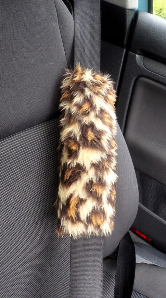 Fuzzy faux fur seatbelt pads in a choice of print's