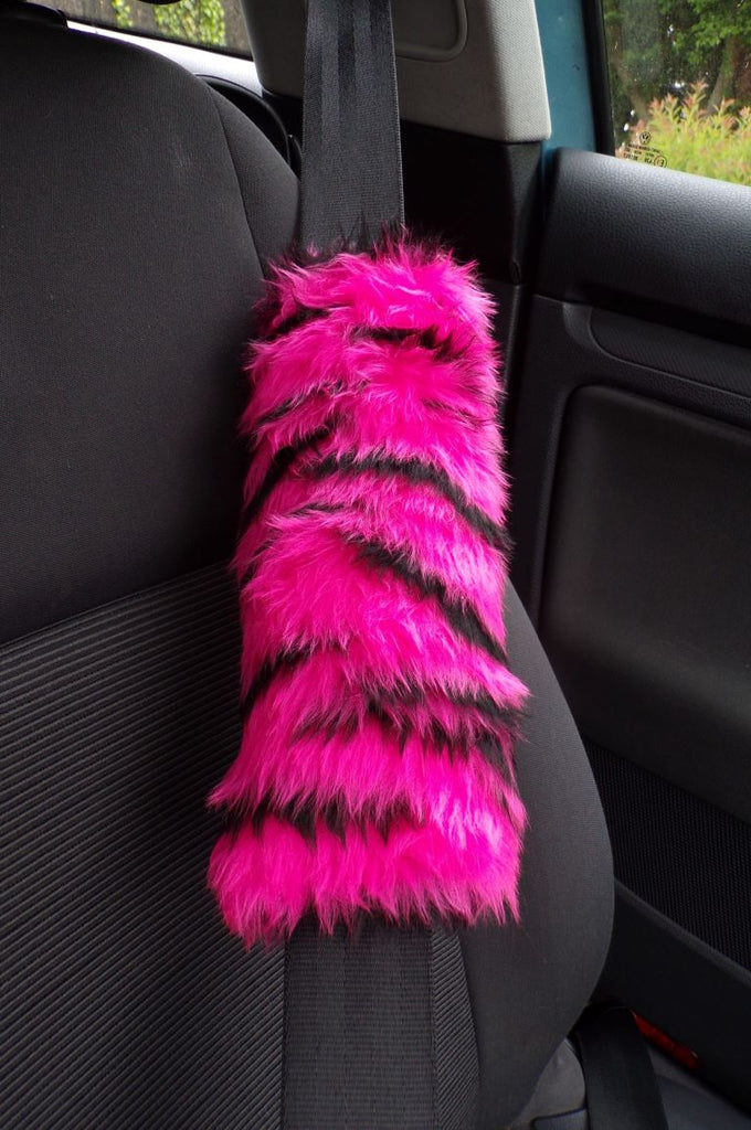 Comfy up those seatbelts! Make a style statement in your car with a pair of Faux Fur Fuzzy Seatbelt Pads!